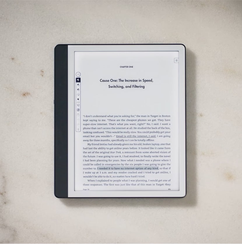 Антибликовый дисплей без отвлекающих приложений и оптимизированная батарея позволяют полностью сосредоточиться на чтении. Одна зарядка по USB-C — до 12 недель чтения.