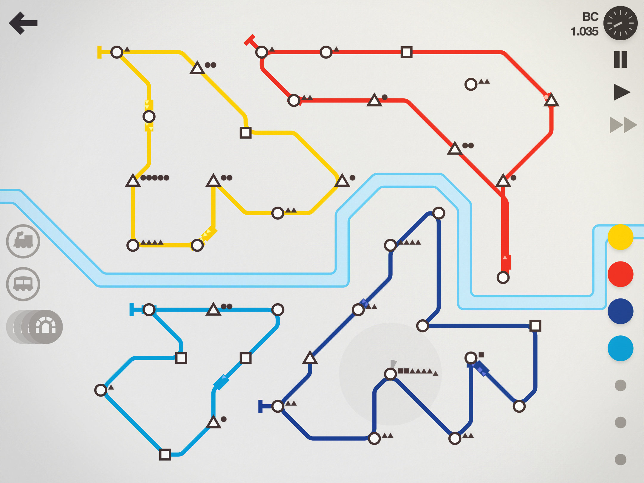 Игра предлагает решить главную задачу — удовлетворить практически безграничные потребности с помощью сильно ограниченных ресурсов. Чтобы решить ее успешно, придется вовремя строить и не пропускать возможность перестраивать пути, объединяющие станции, регулярно пускать на них новые составы.
