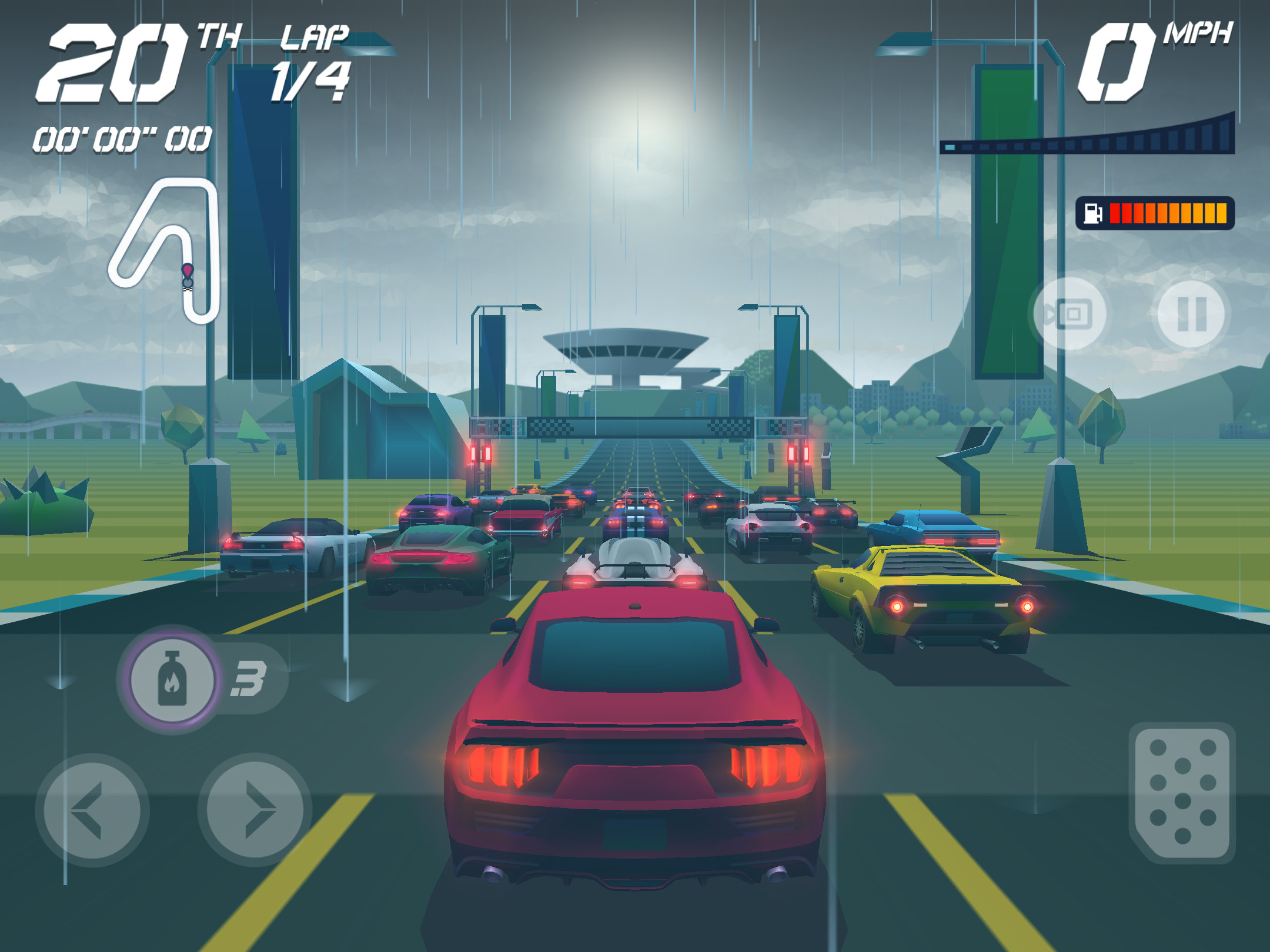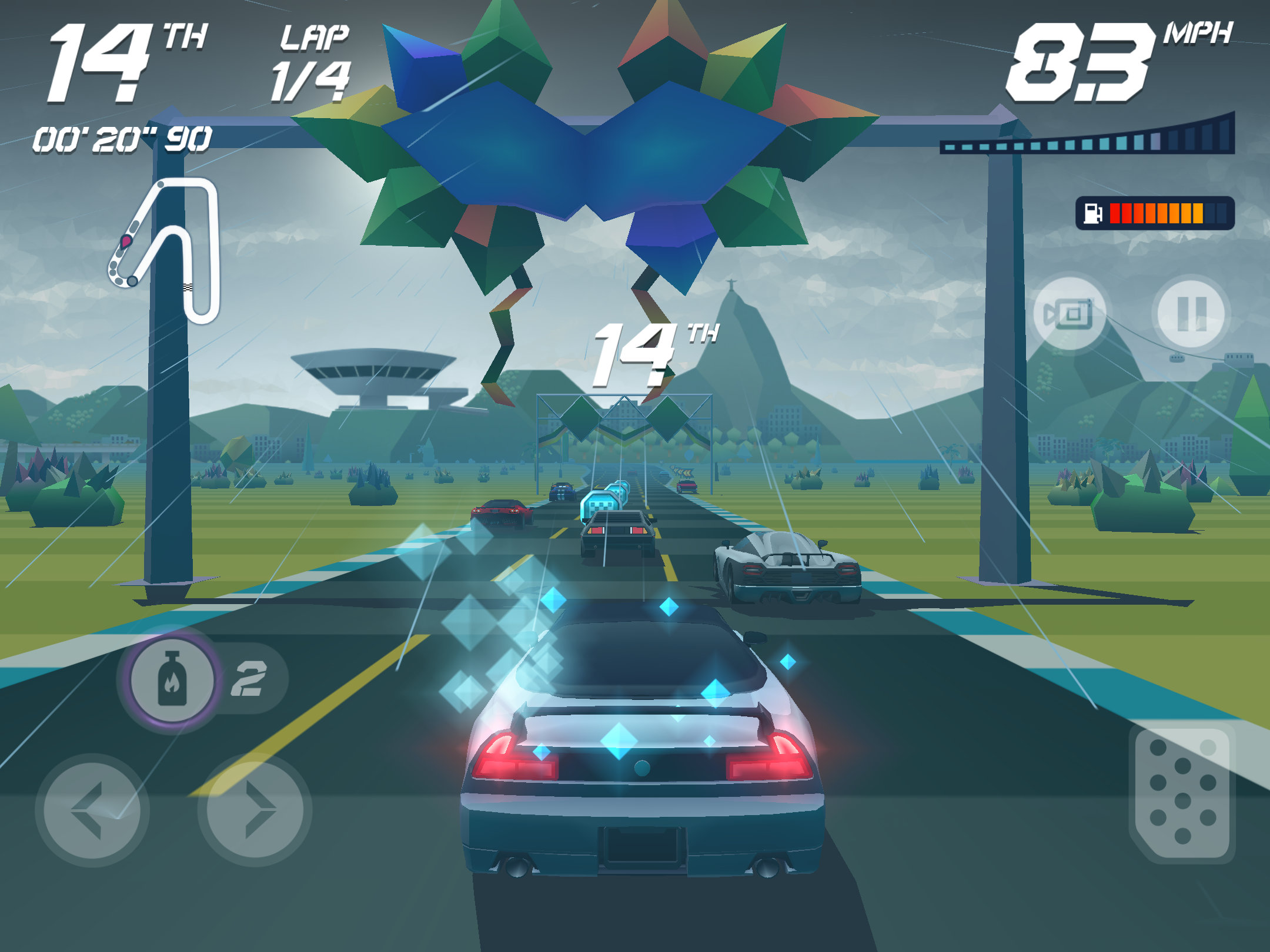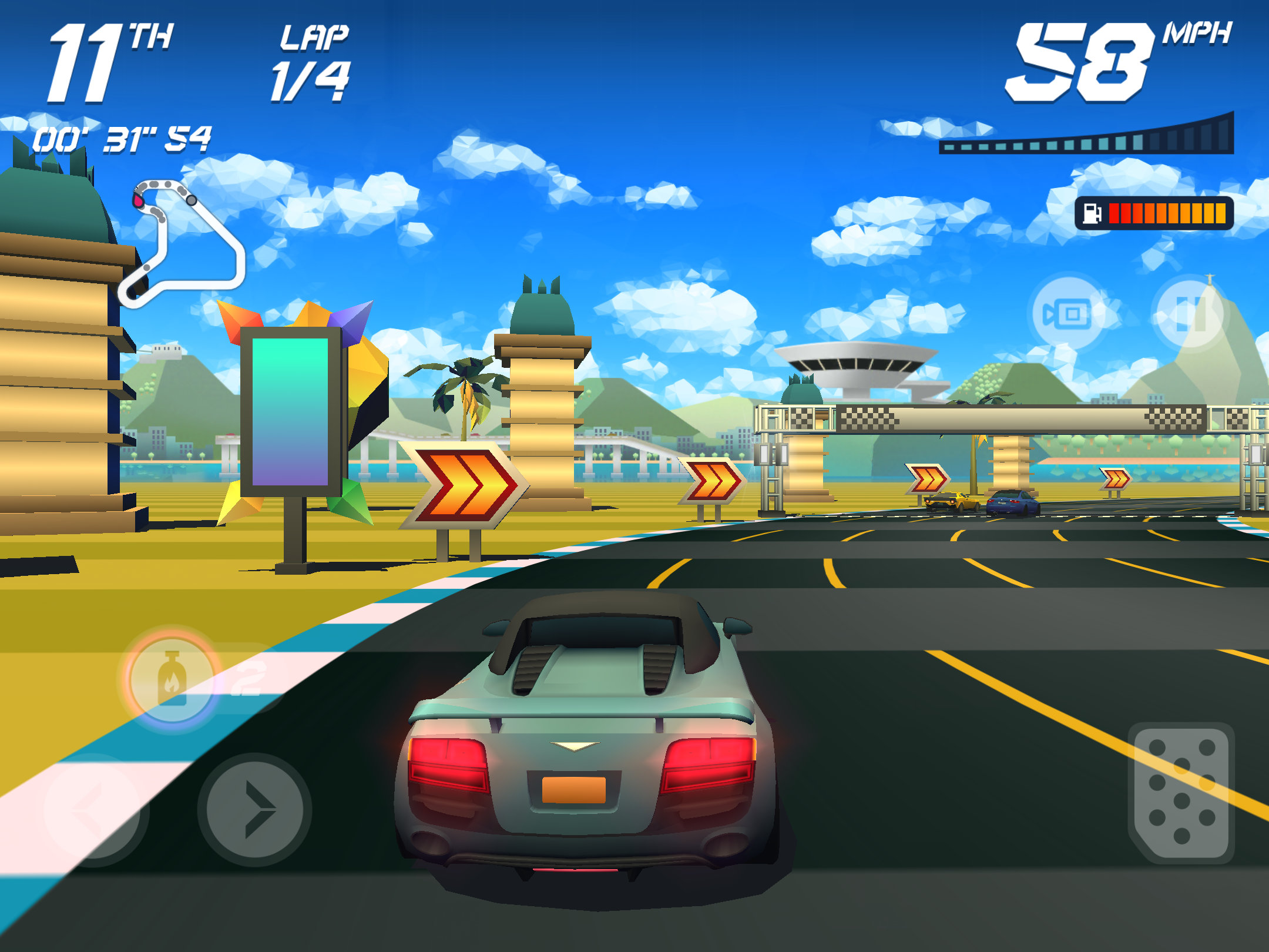 Одни из лучших гонок на мобильных платформах за последние годы. В отличие от других представителей данного жанра, этот не претендует на реалистичность визуального наполнения или поведения автомобиля на дороге. Вместо этого он предлагает ностальгические чувства и детские эмоции.
